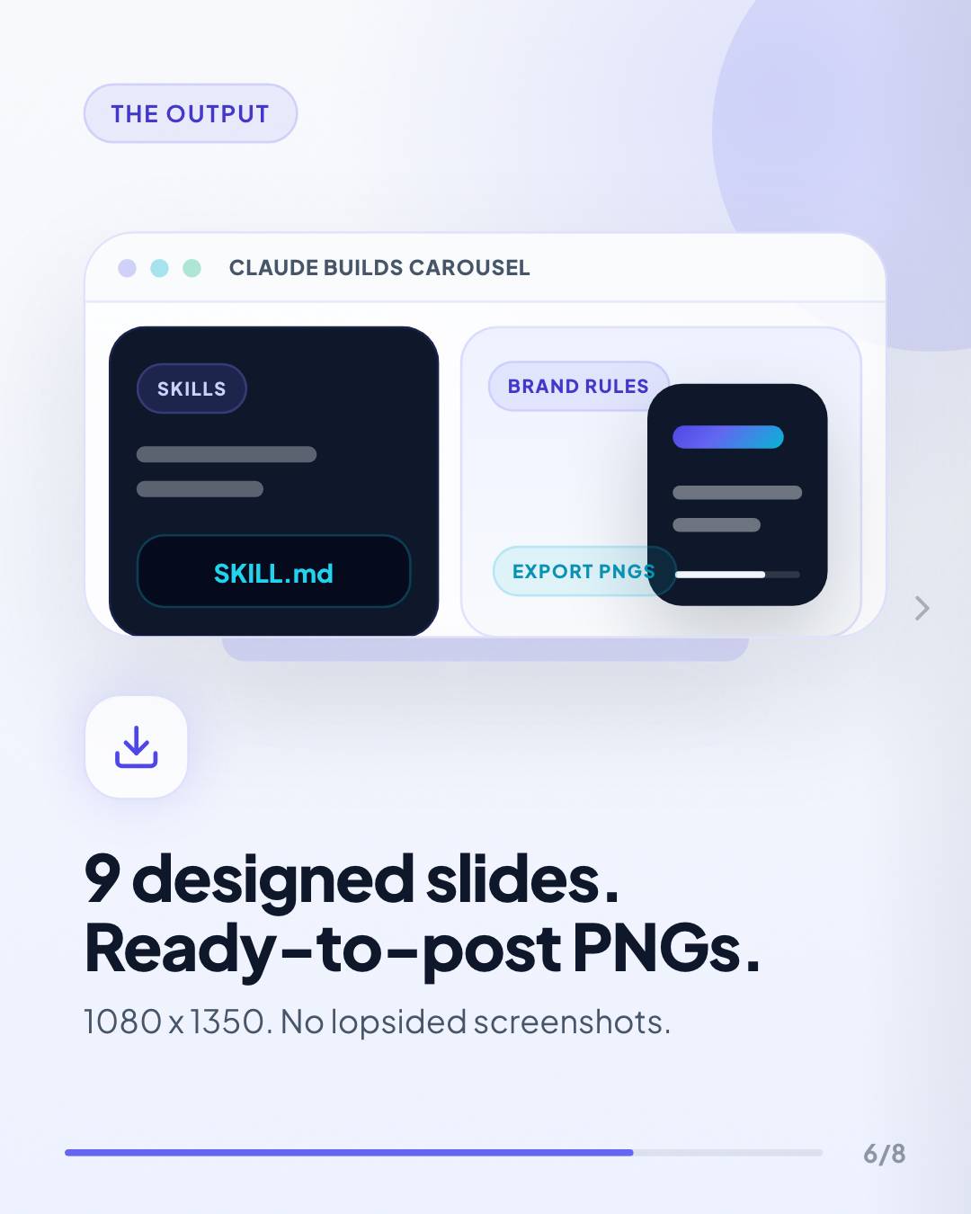 Download the starter SKILL.md below and use it as your base for building branded carousels in Claude.